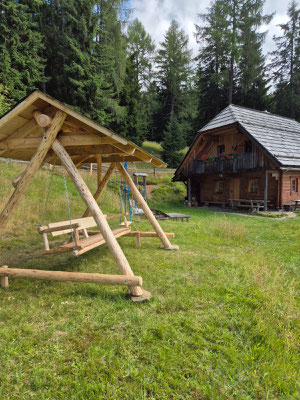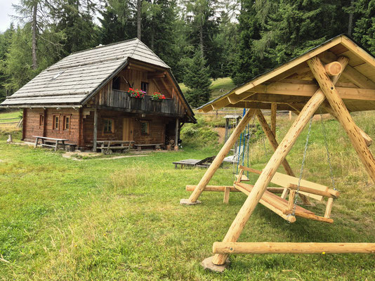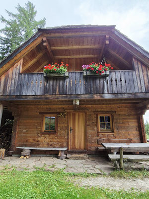 Die gemütliche Wurzelhütte wurde 2009 auf einer südlich gelegenen Almwiese neu erbaut. Beim Bau der Hütte wurde besonders auf hochqualitatives, trditionelles Handwerk wert gelegt. Gemäß Mondphasen geschlägertes Holz, Dachschindeln aus Lärchenholz.